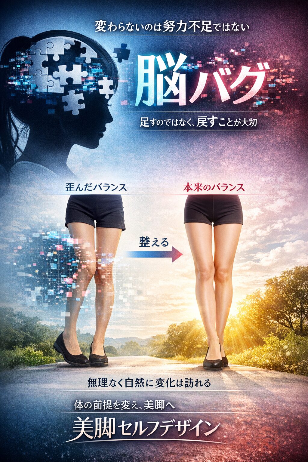 体の使い方と認識を整えることで、本来のバランスは自然に立ち上がります。無理に変えなくても、体は整えば変わる。